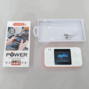 ゲームパッドは、正面に十字キー、ボタン6つ、側面に「L」、「R」の2ボタンがあります。